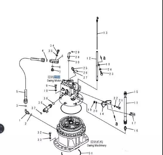 二、旋轉慢或者動首先檢查齒輪油和液壓油是否足夠,其次可從以下方面排查:1、回轉馬達出現故障。2、回轉先導壓力低。3、回轉操作閥內是否堵塞。4、旋轉時快時慢,可能是 先導油路的問題或者是分配器故障。