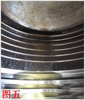 故障現(xiàn)象:以上為500H未更換油封,導(dǎo)致活塞缸體等部件出現(xiàn)早期拉傷故障現(xiàn)象。(因?yàn)橛头馕醇皶r(shí)更換,加上液壓油清潔度不達(dá)標(biāo)造成,見(jiàn)圖三、圖四、圖五)如繼續(xù)使用,就會(huì)造成“拉缸”的重大故障。