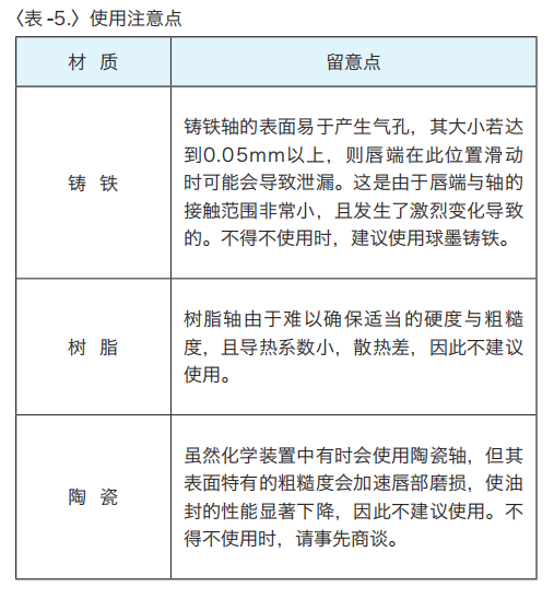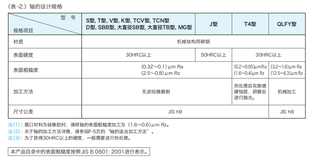 使用J型(RAREFLON密封)時,和唇部接觸的軸的表面硬度為50~ 60HRC。