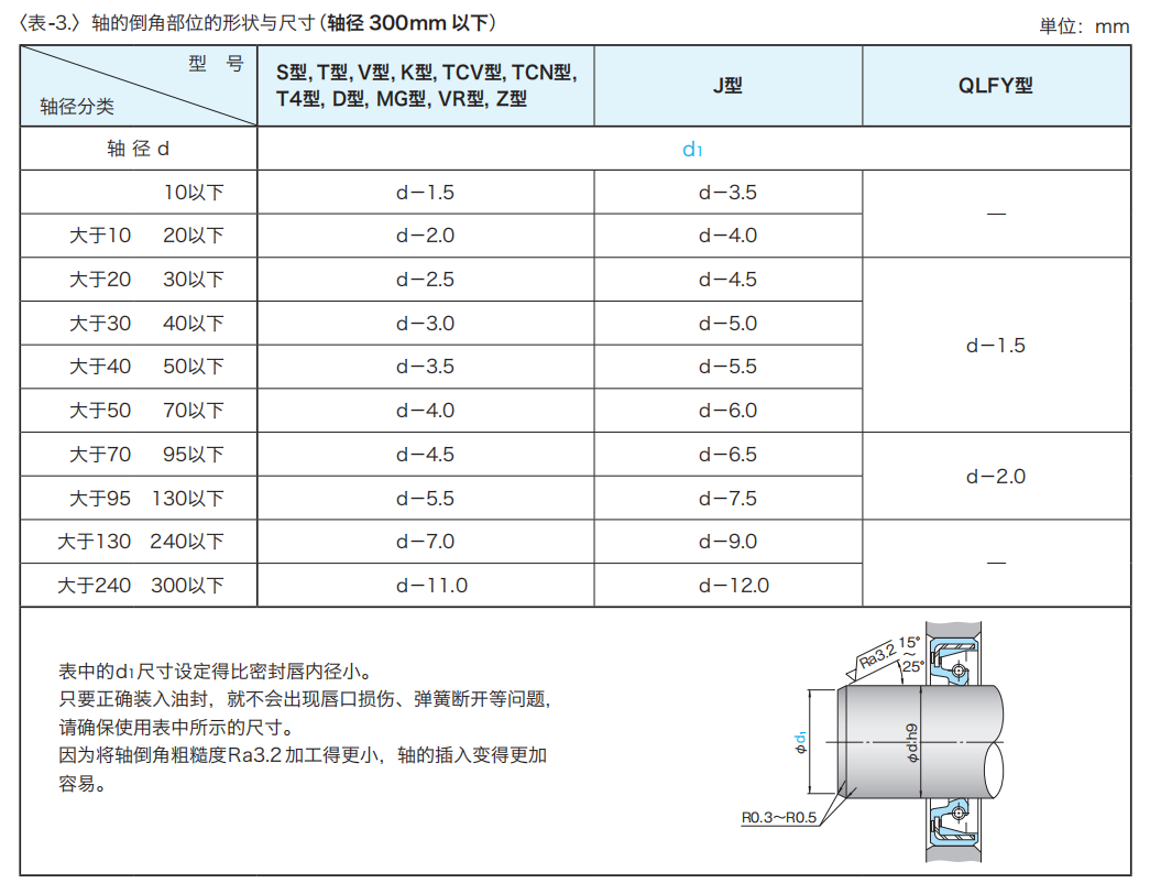 軸的設計規(guī)格見<表-2.> ,軸的倒角部位的形狀與尺規(guī)<表-3.>. <表-4.> 。