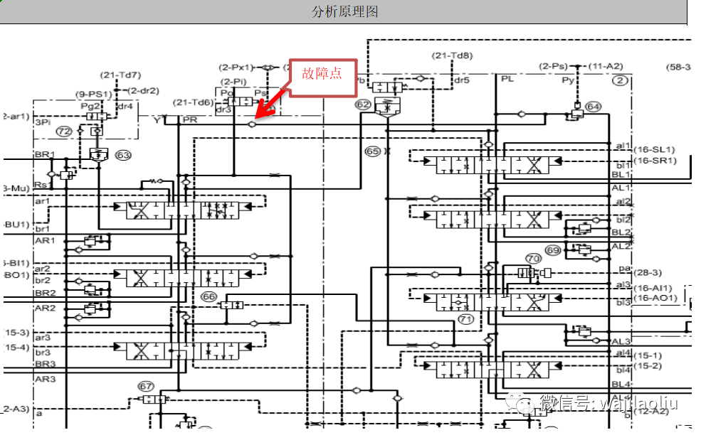(2)此車故障點(diǎn)處出現(xiàn)問題也會(huì)P1泵高壓油流向3閥柱側(cè)中央油道。