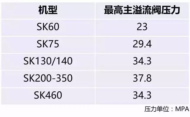 ▊主溢流閥壓力是否正常,可以使用壓力計(jì)測(cè)定主溢流閥的調(diào)定壓力,以下是神鋼系列機(jī)型主溢流閥壓力的最高壓力值: