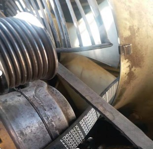 簡要說明:挖掘機發(fā)動機皮帶斷裂,更換發(fā)電機皮帶以后運行不到20小時候皮帶再次斷裂,檢查發(fā)電機皮帶破損形狀為條形斷裂,檢查發(fā)電機、漲緊輪均可自由轉(zhuǎn)動。安裝新皮帶后,運行2小時觀察發(fā)現(xiàn)皮帶背面有明顯的磨損痕跡,拆卸漲緊輪檢查發(fā)現(xiàn),從動輪上有明顯的坑洼??油萑缤凹堃粯訉⑵б稽c一點的磨損,直至斷裂。更換漲緊輪,運行20小時檢查無磨損現(xiàn)象發(fā)生。