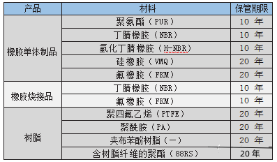 密封件的保管期限如下表所示。