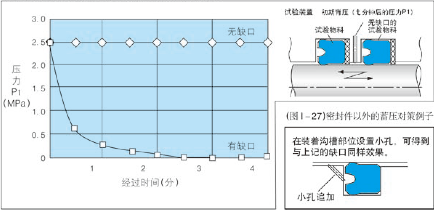 為此,NOK公司針對性的通過大數(shù)據(jù)實驗,來對比了有無缺口的所影響背壓泄露性能的差別。(NOK2010版密封件選型書P231)