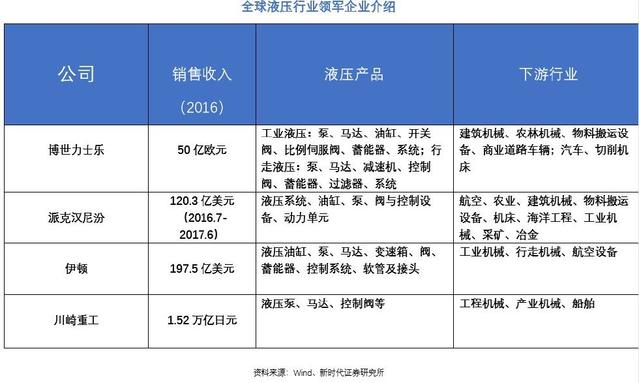 德、美、日制造業(yè)底蘊(yùn)深厚,擁有全球液壓巨頭企業(yè),德國、美國、日本的液壓產(chǎn)業(yè)在全球保持領(lǐng)先,擁有液壓行業(yè)最優(yōu)質(zhì)企業(yè)??傮w而言,液壓產(chǎn)業(yè)的發(fā)展離不開龐大的本土市場需求和企業(yè)強(qiáng)大的技術(shù)研發(fā)實(shí)力與工藝積淀,德、美、日作為傳統(tǒng)的制造業(yè)強(qiáng)國,強(qiáng)大的制造業(yè)底蘊(yùn)成就了一批液壓行業(yè)的百年老店,全球液壓元件行業(yè)公認(rèn)的百年老店包括:博世力士樂(Rexroth)、派克漢尼汾(Parker Hannifin)、伊頓(Eaton)、川崎重工等。