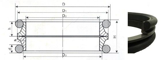 B型浮動(dòng)油封是針對(duì)高負(fù)載設(shè)備設(shè)計(jì)的,常用于各種重型采刁’一設(shè)備易發(fā)生較大振竄、沖擊的部位,如采煤設(shè)備搖臂、鏈輪、減速機(jī)等。它由一對(duì)截面為L(zhǎng)形的浮封環(huán)和一對(duì)膠圈(橡膠碟形彈簧)組成,裝配在L形浮封座內(nèi),原理與A型相似。由于膠圈的變形能力大于O型圈,因此可以提供更大的浮動(dòng)范圍。另外L形浮封座也易于加工,B型浮動(dòng)油封的裝配也較為方便。