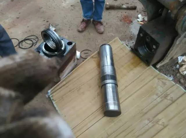 新的活塞要兩三千,還是副廠的,雖然有質(zhì)保期但老板考慮錘用的不多,要新釬桿還要一倆天才能到。這個(gè)用沙皮打打也能用,所以就用沙皮打了打,又按上了。按的時(shí)候要注意,來(lái)回晃晃好按點(diǎn)。