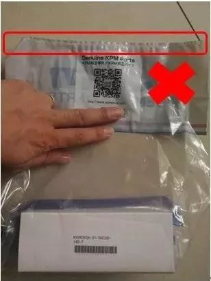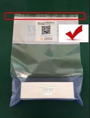如下圖所示,純正品包裝袋最上方有一段透明封口區(qū)域,而那些企圖再利用川崎純正品包裝袋的不法商家,會(huì)將透明塑封口剪去后,重新塑封到白色區(qū)域,若沒有認(rèn)真觀察是無法看出。