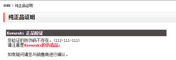 望廣大用戶提高警惕,在購買川崎純正品時(shí),積極刮開涂層防偽碼,在川崎官方網(wǎng)站上進(jìn)行純正件驗(yàn)證,還需仔細(xì)留意包裝袋是否有再利用痕跡。