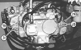 注:以與驅(qū)動泵同樣的方式調(diào)整惰輪泵的最大輸出流量。使用鎖緊螺母 (29) 和調(diào)整螺釘 (28)以便調(diào)整惰輪泵的最大輸出流量。