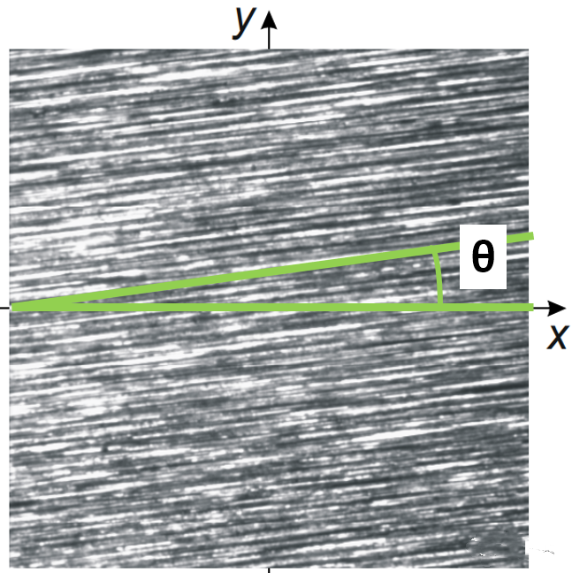 圖4是軸表面螺旋紋的檢測(cè)截圖,Y是軸向,X為徑向,θ便是磨削螺旋紋的螺旋角,對(duì)于密封區(qū)域的軸表面來說,要求磨削紋為0°,即無螺旋結(jié)構(gòu),在圖紙上通常以“無表面螺旋紋”或“無進(jìn)給磨削”來體現(xiàn)。